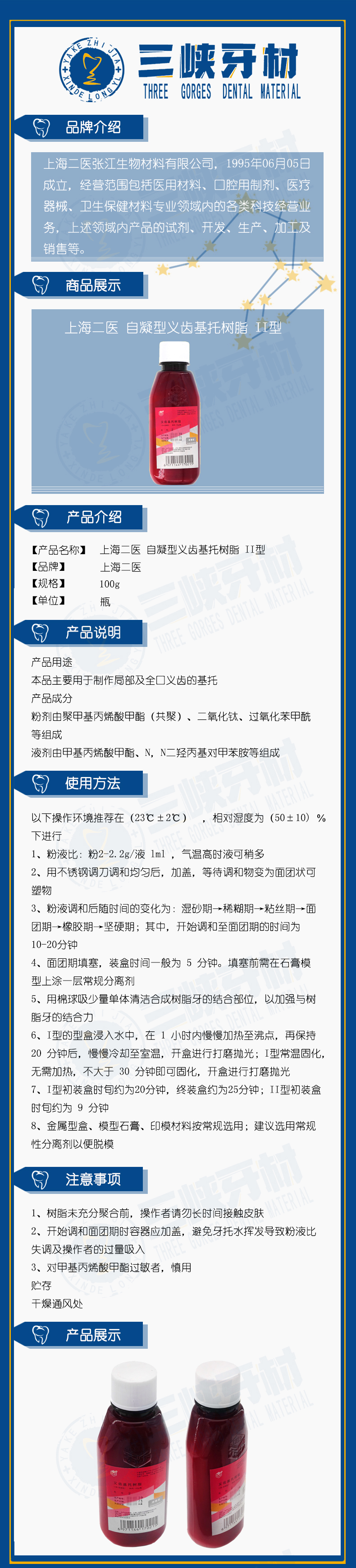 上海二醫(yī)自凝型義齒基托樹脂 II型